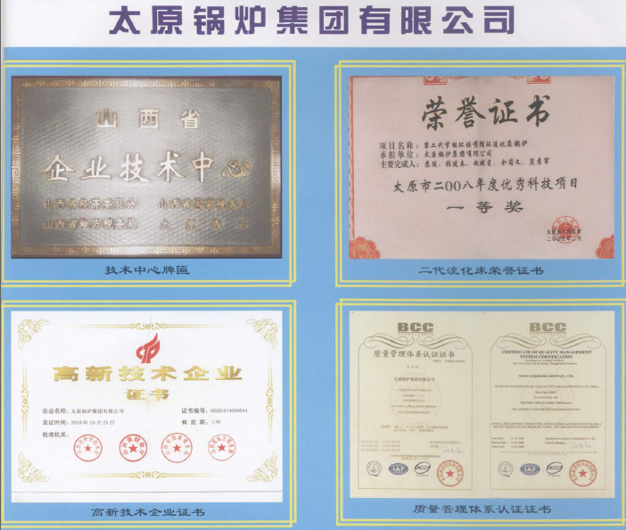 太原鍋爐集團有限公司是國家A級鍋爐制造單位,公司占地面積68萬㎡,資產總值6.7億元,現有職工2000人,公司擁有一批從事熱能、電力、環保等專業的高級技術人才,其中教授級高工5名,高級工程師50名,工程師185名,其它技術人員735名。公司是華北地區最大的鍋爐制造企業。公司擁有A級鍋爐和三類壓力容器設計制造許可證,同時是中國循環流化床鍋爐、層燃鍋爐、余熱鍋爐、垃圾焚燒鍋爐、燃氣鍋爐、壓力容器、氣力輸送、粉煤灰分選和水處理設備的重要研發和制造基地。